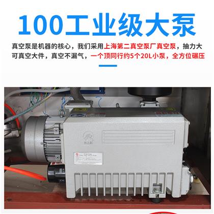 該機采用國內(nèi)知名品牌上海第二真空泵產(chǎn)生產(chǎn)的工業(yè)級大泵,引起德國普旭技術(shù),部分核心部件為全進口,關(guān)鍵部位材質(zhì)含有微量金屬元素,真空泵壽命更持久,其中真空油為專業(yè)配方,耐高溫,比傳統(tǒng)真空泵油更耐用。抽氣速率為100m3/H,