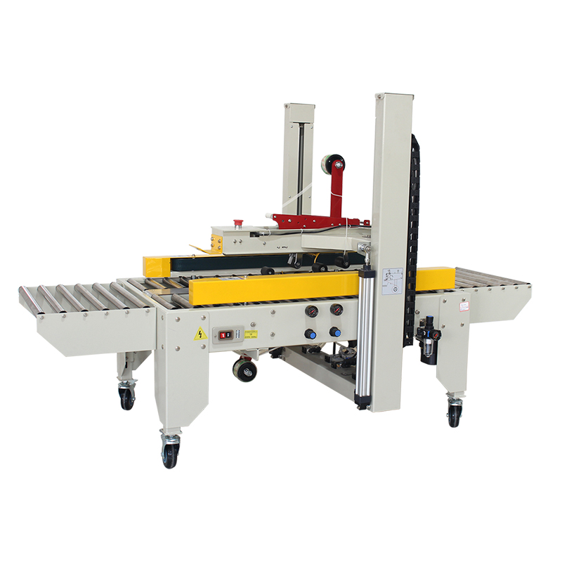 FXJ-5050E可以根據(jù)紙箱的寬度和高度不同,自動調(diào)節(jié)定位尺寸。主要適用于不同規(guī)格的紙箱在同一條流水線上的封箱包裝,即可單機作業(yè),也可與流水線配套使用,廣泛應(yīng)用在家用電器、紡織、食品、百貨、醫(yī)藥、化工等行業(yè)。封箱打包機采用即貼膠帶封紙箱封口,經(jīng)濟快速、容易調(diào)整,可一次完成上、下封箱動作,采用印字膠帶,更可提高產(chǎn)品形象。是自動化包裝企業(yè)的優(yōu)選。